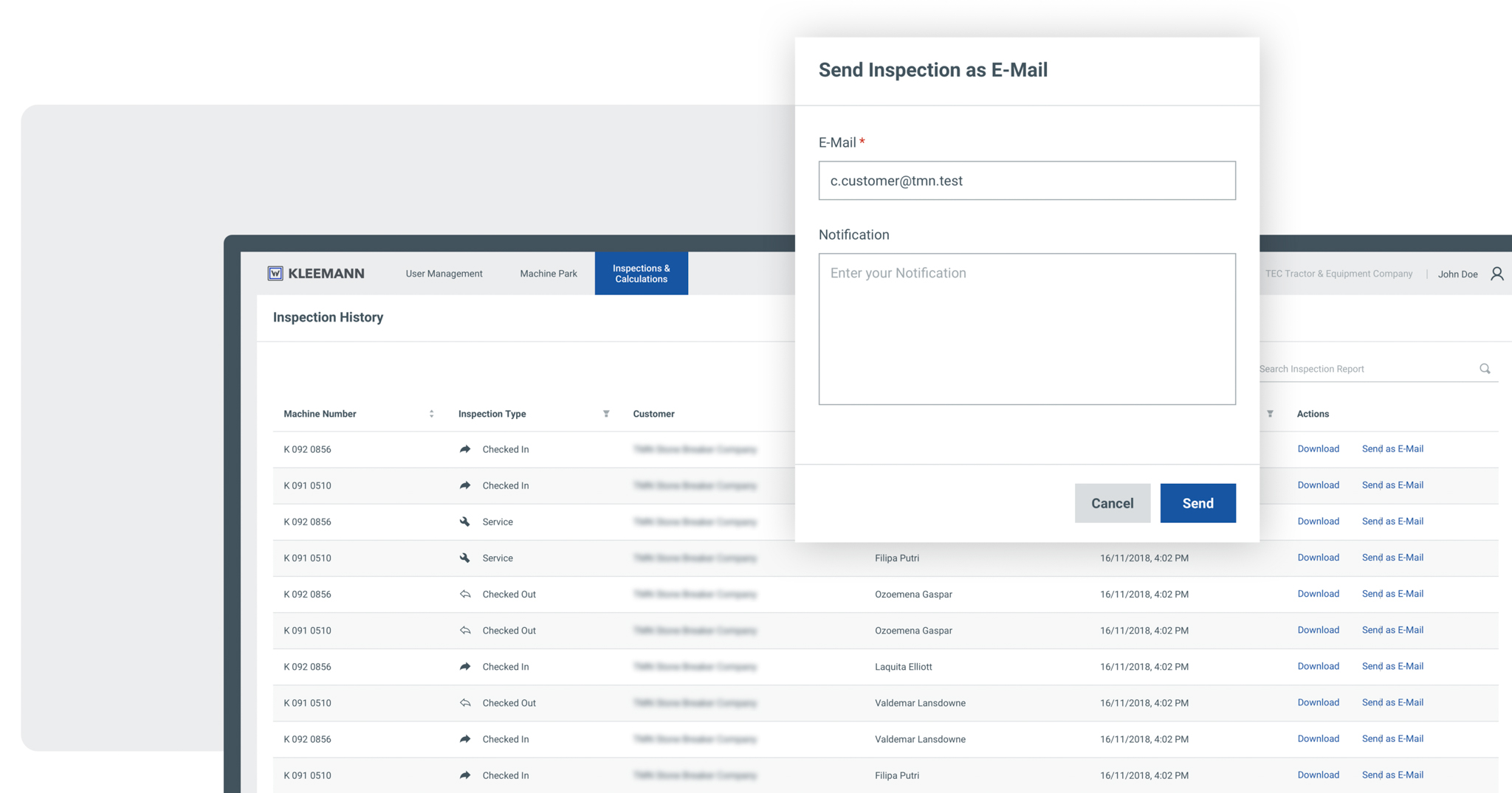 Der Rental Manager digitalisiert nicht nur die Checklisten sondern vereinfacht durch zusätzliche Features den kompletten Inspektions- und Mietprozess. Aus der anfänglichen Idee einer App für Inspektionen entwickelte sich ein Mini-Flottenmanagementsystem, das neben einer rudimentären Verwaltung der Anlagen auch Garantieprozesse und Mietkalkulationen in einem auf die Prozesse geschnitten Berechtigungskonzept abdeckt. Die App und das Control Center werden zwischenzeitlich produktiv von Händlern in Amerika genutzt und wird nun kontinuierlich in Zusammenarbeit mit Kleemann und den Kollegen aus unserer Schwester der Binarystate weiterentwickelt.
