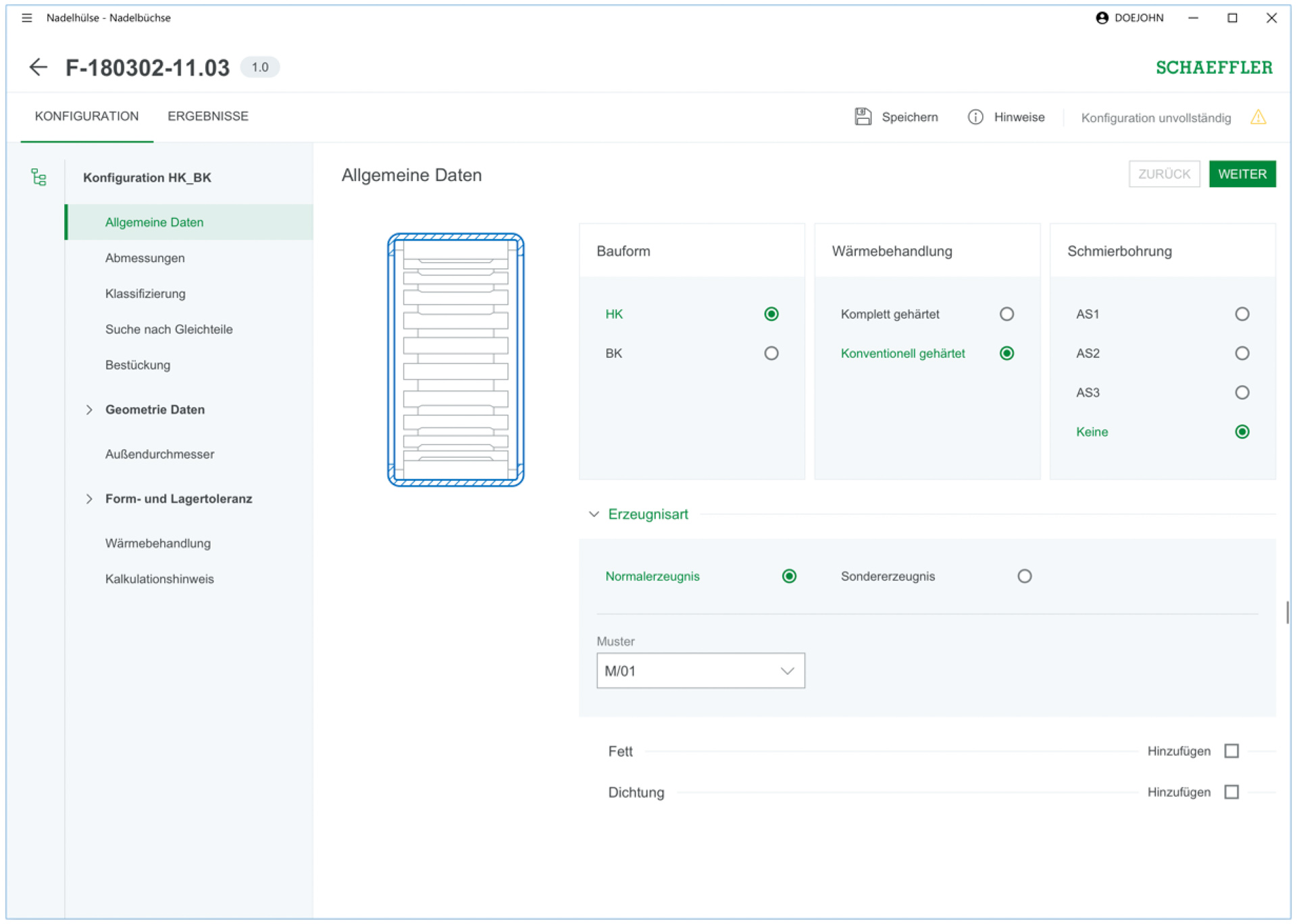 Für Schaeffler war es besonders wichtig, den Nutzer von Anfang an in den Gestaltungsprozess miteinzubeziehen. In vielen der gemeinsamen Termine und Workshops waren daher Anwender und auch Entwickler immer mit dabei. Die von den Experten des Usabilitywerks zusätzlich durchgeführte Kontextanalysen lieferten weitere wertvolle Erkenntnisse und wir hatten dabei gleichzeitig die Gelegenheit den Nutzern bei seiner Arbeit mit den Konfiguratoren über die Schulter zu schauen. Von der ersten Skizze, über Wireframes bis zum Screendesign wurde so iterativ das Nutzerfeedback in die Designs eingearbeitet und über einen Usability-Test weiter evaluiert.